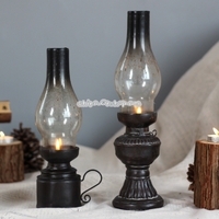 Glass Retro Wrought Iron Street Lamp Candle Holder Home Wedding Decoration