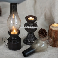 vintage style, handmade; can be placed with a 3.8cm round candle, the top shade is worn black glass