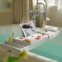 - Bamboo Bathtub Rack Retractable Bathtub Tray Multi-function Soaking Bracket