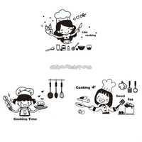 Remove Waterproof Creative Cute Chef Cut Vegetables Kitchen Restaurant Wall Stickers, Size:20x30cm(Black) | x 1 | 2,040 dram |