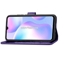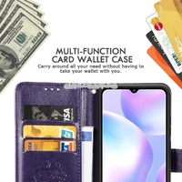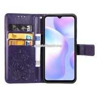 - For Xiaomi Redmi 9A Four-leaf Clasp Embossed Buckle Horizontal Flip TPU + PU Leather Case with Lanyard & Card Slot & Wallet & Holder