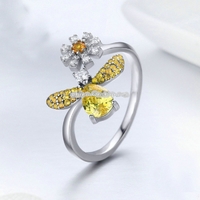 - S925 Sterling Silver Ring Bee Blessing Open Ring