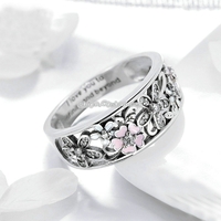 - S925 Sterling Silver Ring Flower Dance Fashion Personality Ring, Size:8 US