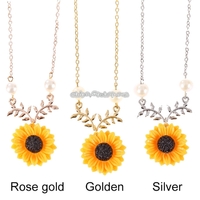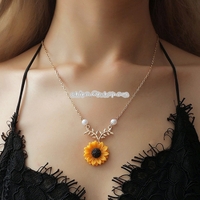- Delicate Sunflower Pendant Necklace Women Creative Imitation Pearls Jewelry Necklace