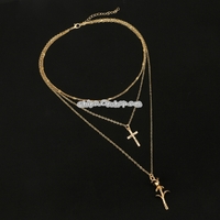 Vintage Cross Rose Flower Pendant Necklaces Women Girl Floral Layered Necklace | x 1 | 2,180 dram |