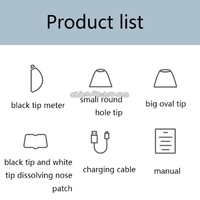 12. Product list: black tip meter, small round hole tip, big oval tip, black tip and white tip dissolving nose patch, charging cable, manual