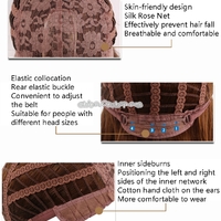 8. Features: skin-friendly design, silk rose net, effectively prevent hair from falling, breathable and comfortable, rear elastic buckle, easy to adjust the size of the belt, suitable for people with different head sizes, both sides of the inner net can be used for positioning left and right , with cotton hand cloth on the ears, more comfortable to wear