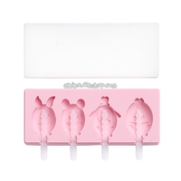 - 2 PCS Handmade Cartoon Homemade Ice Cream Silicone Stick Ice Mold with Lid DIY Ice Box, Style:Piggy