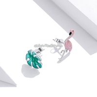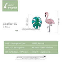 S925 Sterling Silver Leaves Flamingo Ear Studs Women Earrings | x 1 | 7,750 dram |