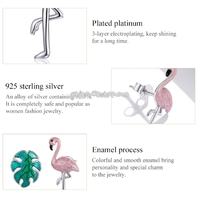 - S925 Sterling Silver Leaves Flamingo Ear Studs Women Earrings