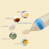 90ML Safe Newborn Baby Feeding Bottle Toddler Silicone Squeeze Feeding Milk Cereal Bottle with Hard Spoon | x 1 | 3,280 dram |