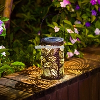- Outdoor Solar Wrought Iron Projection Lamp Hollow Wall Hanging Portable Garden Decorative Lamp