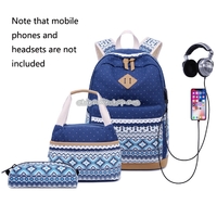 1916-1 3 PCS / Set Printed USB Backpack Student School Bag