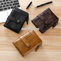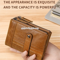 FX-199 Leather Retro Men Double Zipper Short Wallet Anti-RFID Casual Wallet Coin Purse | x 1 | 17,620 dram |