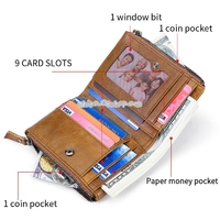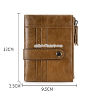 - FX-199 Leather Retro Men Double Zipper Short Wallet Anti-RFID Casual Wallet Coin Purse