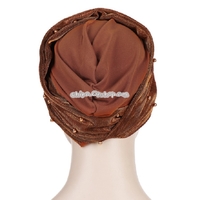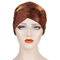- Women Beaded Two-color Turban Hat Bright Silk Cloth Hooded Cap