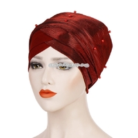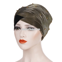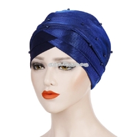 Women Beaded Two-color Turban Hat Bright Silk Cloth Hooded Cap | x 1 | 5,000 dram |