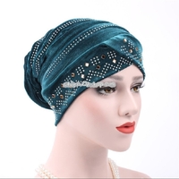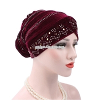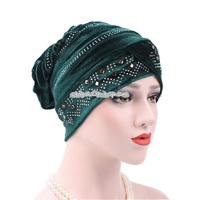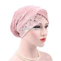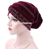 - Pleuche Rhinestone Turban Hat Stacking Hat