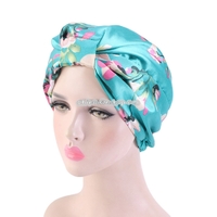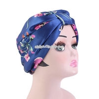 - Satin Printed Double-Layer Turban Cap Silk Night Cap Hair Care Cap Chemotherapy Hat, Size: One Size(Navy Flower) Lead Time: 1~3 Days