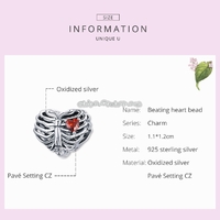 - S925 Sterling Silver Beating Heart Beads DIY Bracelet Necklace Accessories