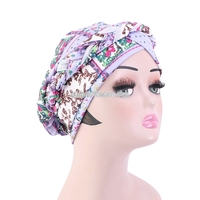 Turban Hat Twist Braid Hat Bohemian Toe Cap Night Cap Nursing Cap, Size: One Size(Light Purple Rose Red Floral) | x 1 | 5,000 dram |