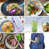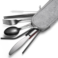 - 7 in 1 Cutlery Spoon Chopsticks And Straw Set Stainless Steel Portable Cutlery Set, Specification: Symphony + Deep Bag
