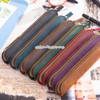 - Retro Simple Leather Stylus Leather Zipper Pen Protection Case Crazy Horse Skin Mini Pen Case