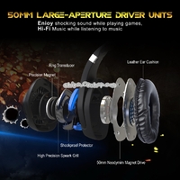 2. Tuned strictly by professional technician, the 50mm large drive unit lay more emphasis on sound performance and create powerful stereo sound, you will fell as if you were truly on the game scene. With shocking, clear and deep bass sound effect, this headset is a very good choice for games, movies and music.