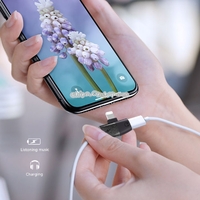 Baseus 8 Pin Male to 3.5mm + 8 Pin Female Charging and Play Music Adapter, Support iOS 11 System