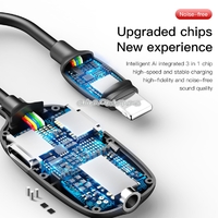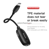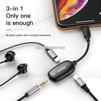 - Baseus L51 3 In 1 8 Pin Male to 3.5mm Female + Dual 8 Pin Female Charging Call Listening Song ABS Audio Headphone Adapter