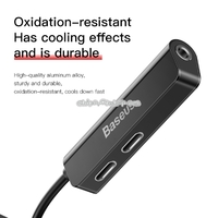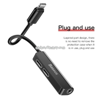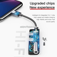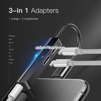- Baseus L52 3 In 1 8 Pin Male to 3.5mm Female + Dual 8 Pin Female Charging Call Listening Song Metal Audio Headphone Adapter