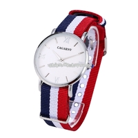 - CAGARNY 6813 Concise Style Ultra Thin Quartz Wrist Watch with Striped Nylon Band for Women