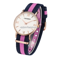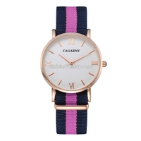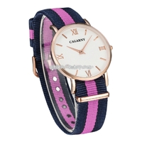 - CAGARNY 6813 Fashionable Ultra Thin Rose Gold Case Quartz Wrist Watch with 3 Stripes Nylon Band for Women(Pink)