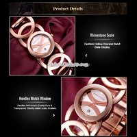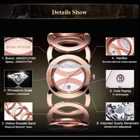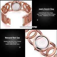 - JIANGYUYAN 3808 Fashionable and Elegant Rhinestone Scale Quartz Wrist Watch with Hollowed-out Alloy Band and Jewelry Bracelet Clasp for Women(Rose Gold Case + White Window)
