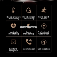 6. Main functions: pedometer, dynamic heart rate, sleep, sitting for a long time, mileage, blood oxygen, blood pressure, multi-movement mode, calories, WeChat, QQ and other text messages prompt, full font push, WeChat sports, weather forecast, call rejection.