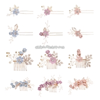 - Fashion Flower Hair Combs Headdress Prom Bridal Wedding Hair Accessories Gold Leaves Hair Jewelry Hair Pins