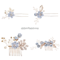 - Fashion Flower Hair Combs Headdress Prom Bridal Wedding Hair Accessories Gold Leaves Hair Jewelry Hair Pins