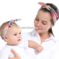 - 2 in 1 Printed Rabbit Ear Mom Baby Hair Band Set
