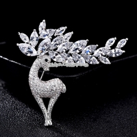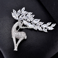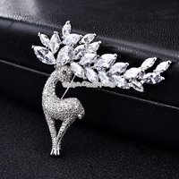 - Women Fashion Crystal Zircon Cute Deer Brooch(Silver)